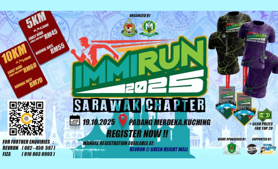 IMMIRUN 2025 is a community fun run hosted by Jabatan Imigresen Malaysia, taking place on 18 October 2025 at Padang Merdeka, Kuching, Sarawak. The event features 3 km, 5 km, and 10 km categories, welcoming participants of all ages. With event tees, medals,...