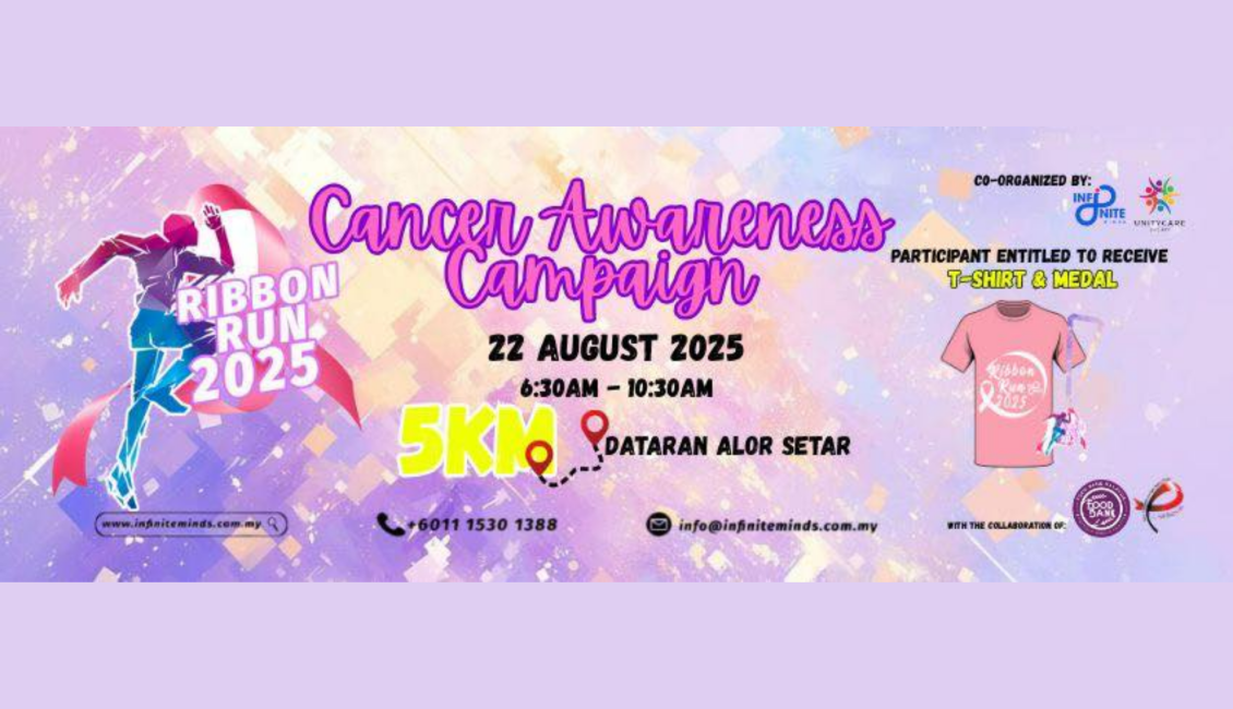 Alor Setar Ribbon Run 2025 is a charitable 5 km fun run held on 22 August 2025 at Dataran Alor Setar. Open to all, the event supports Cancer Survivors Malaysia and Food Bank Malaysia, offering participants race tees, finisher medals, breakfast, lucky-draw prizes, and a meaningful way to contribute while staying active.