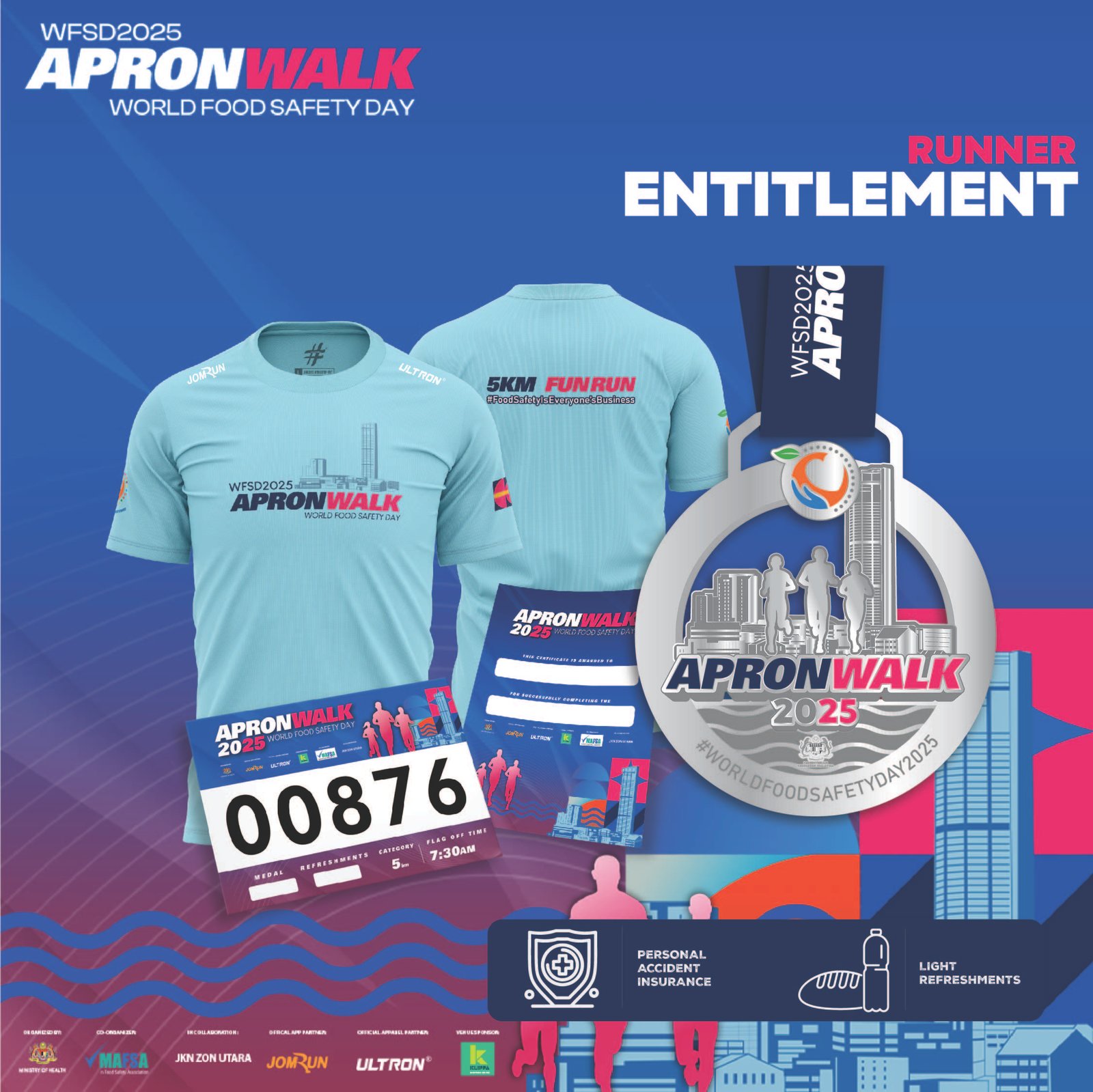 The Apron Walk 2025 is a vibrant 5 KM community fun walk held on 13 September 2025 at Klippa Shopping Centre, Penang, organized in conjunction with World Food Safety Day. Open to all ages and fitness levels, participants receive an exclusive event jersey, finisher medal, race bib, e‑certificate, light refreshments, and personal accident insurance—all while raising awareness for food safety and hygiene. This enjoyable and meaningful morning walk combines wellness, education, and community spirit in a safe and inclusive setting.