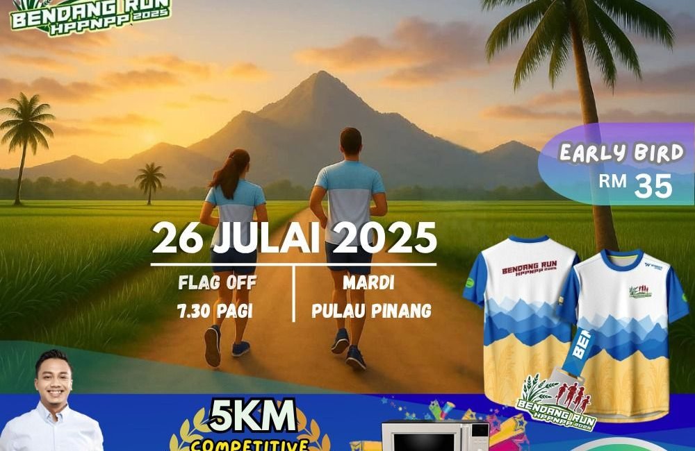 Bendang Run HPPNPP 2025 is a fun and competitive 5km run held in celebration of farmers, breeders, and fishermen. Open to participants aged 12 to 60, the event offers prizes, finisher medals, and goodies for all runners, creating a lively community sports atmosphere.