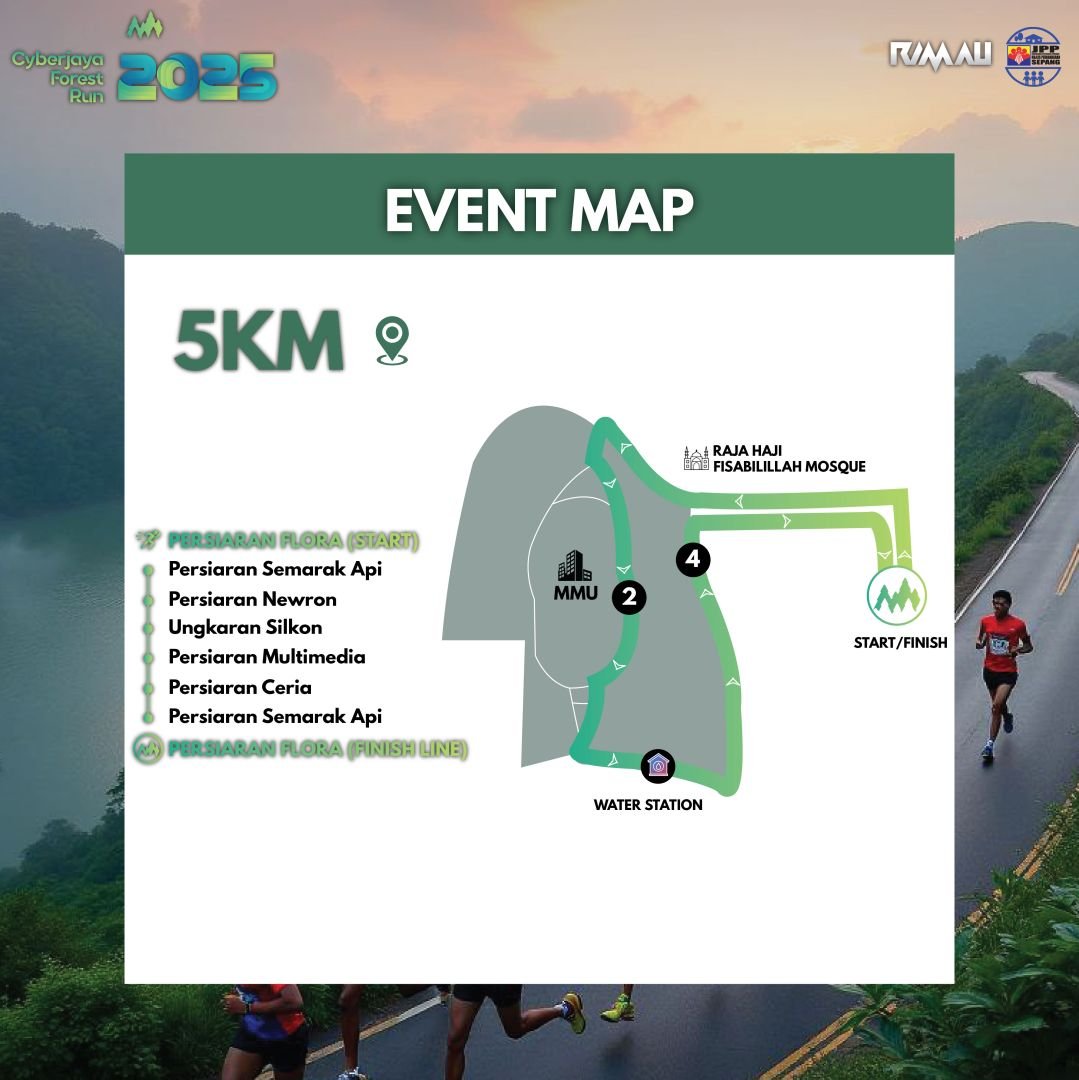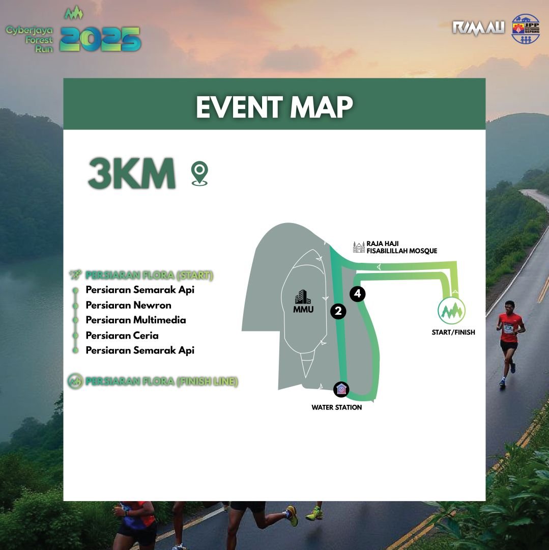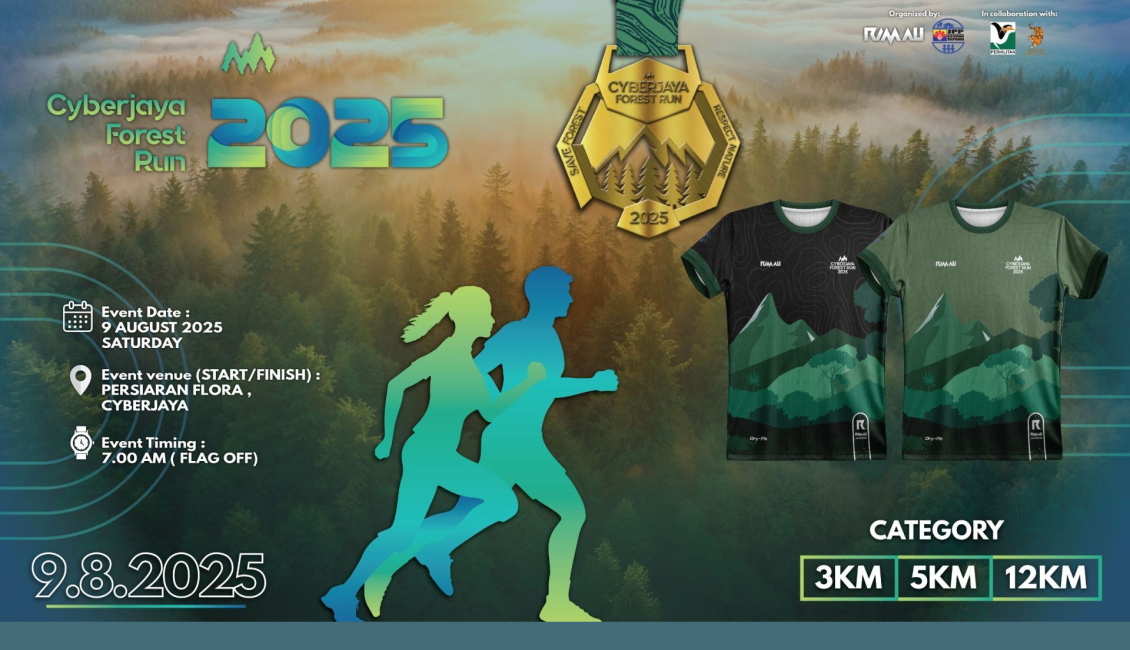 Cyberjaya Forest Run 2025 takes place on 9 August 2025 at Persiaran Flora, Cyberjaya, offering 3 km, 5 km, and 12 km forest trail routes. Organized by Rimau Running, it’s designed to blend fitness with nature conservation—inviting runners of all levels to race through scenic greenery and embrace “Every step, save the forest.