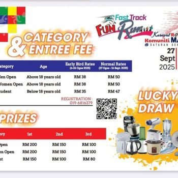 Fast Track Fun Run 2025 is an exciting community event happening on 26 September 2025 at Dataran Seri Jempol, Negeri Sembilan. More than just a run, it’s a celebration of health, unity, and active living, bringing together participants of all ages to enjoy a fun and vibrant outdoor experience in a friendly atmosphere.