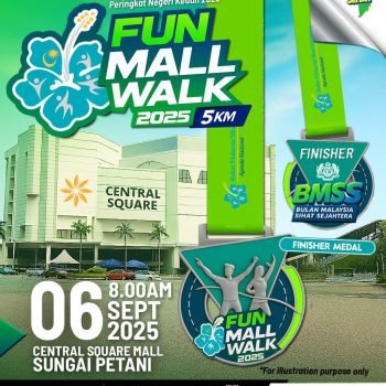 The Fun Mall Walk 2025 is a free 5 KM community walking event hosted at Central Square Mall, Sungai Petani on 6 September 2025. Organized by Kelab Sukan Generasi Kejayaan Ria in collaboration with Ashkhu Glow Event Management, the event is open to walkers aged 7 and above—including both male and female categories. Participants enjoy a safe, air-conditioned route through mall and outdoor areas, race shirts, lucky draws, and friendly community vibes—all designed to promote health, togetherness, and an active lifestyle.
