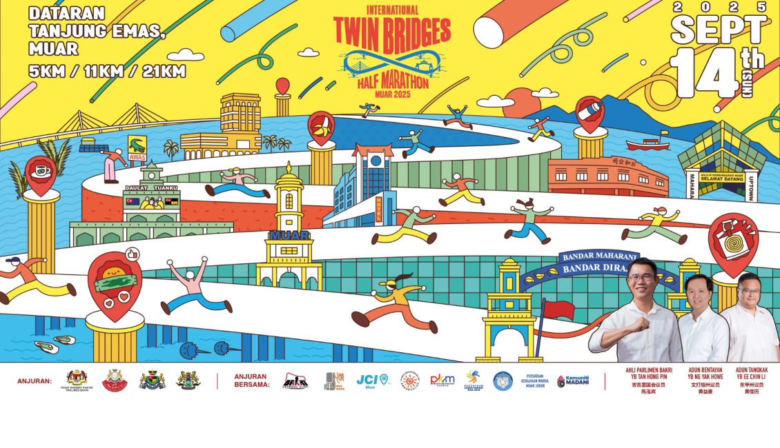 Invites runners to experience the charm of Muar while crossing its iconic twin bridges. This scenic race combines coastal beauty, local culture, and a spirited running community — making it a must-join event for runners seeking a meaningful and picturesque challenge.
