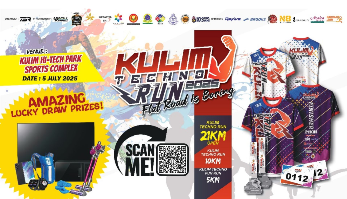 Kulim Techno Run 2025 takes place on 5 July 2025 at the KHTP Sports Complex, Kulim, Kedah. Organized by TSR Heritage, the event features 5 km fun runs, 10 km categories grouped by age, and a competitive 21 km race. With themed tees, finisher medals, lucky draws, and timed results, it’s a vibrant community run that brings together runners of all levels.