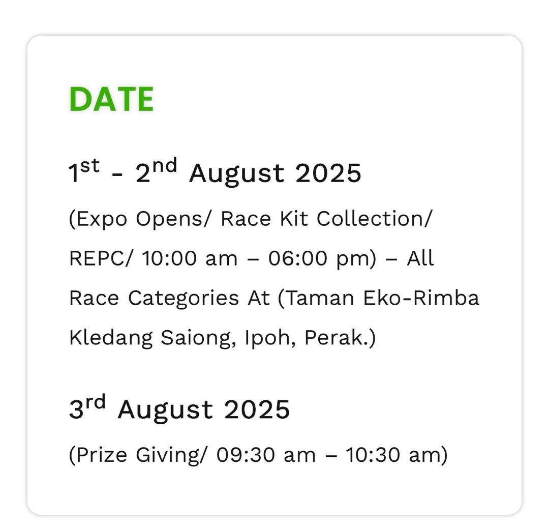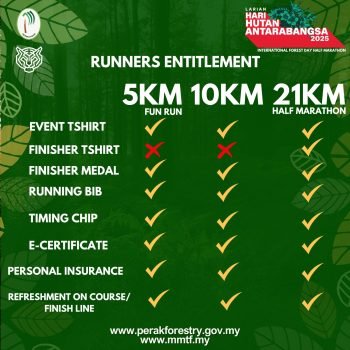 Larian Hari Hutan Antarabangsa 2025 is a community-based fun run held in conjunction with International Forest Day. Featuring a 5 km and a 10 km route through scenic green spaces, the event promotes environmental awareness, healthy living, and community unity. Participants receive eco-friendly race tees, finisher medals, and enjoy an energizing morning celebrating forests and nature.