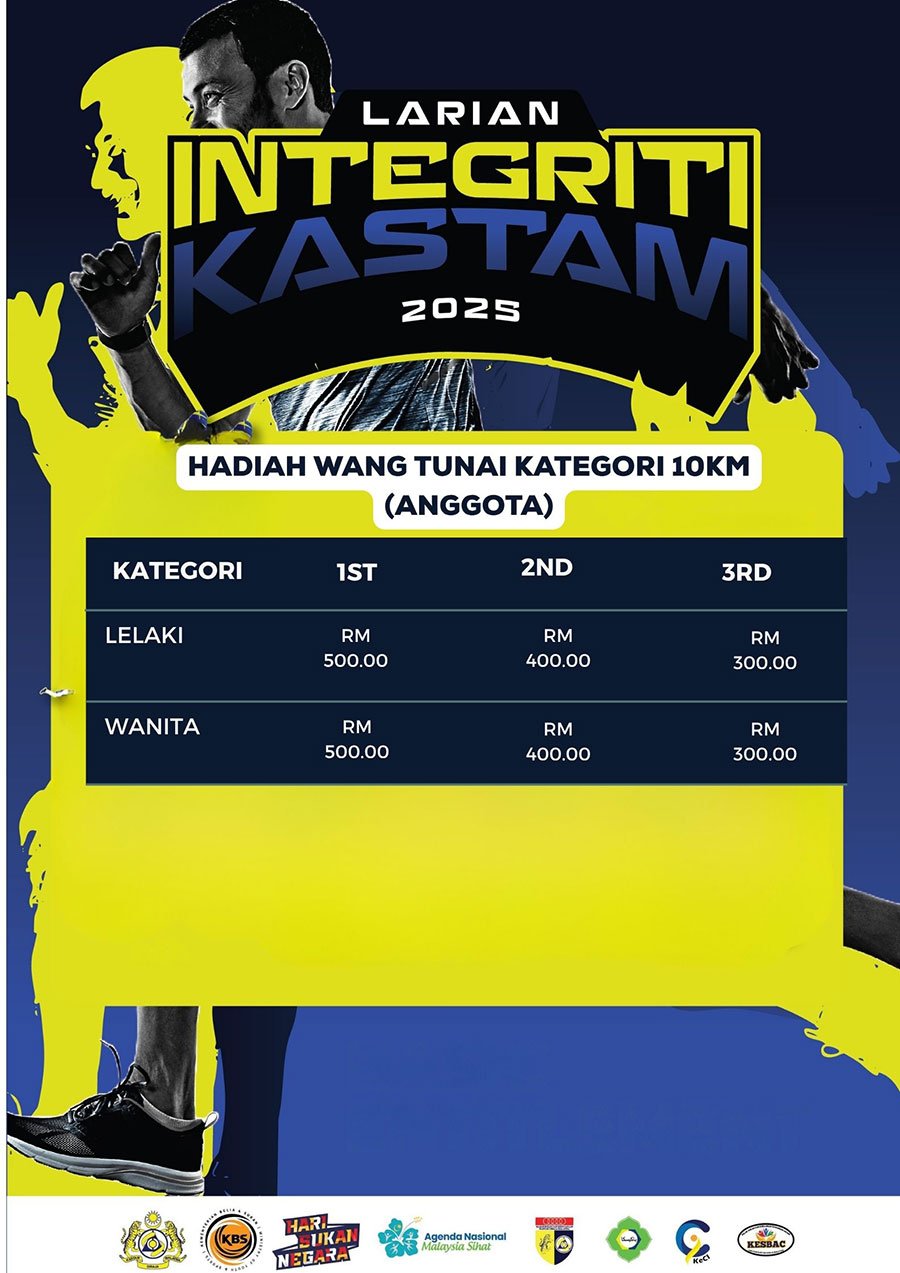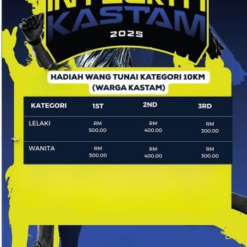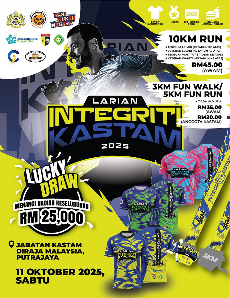 Larian Integriti Kastam is an annual running event organized by the Royal Malaysian Customs Department to promote integrity, transparency, and healthy living among civil servants and the public. This meaningful event brings together participants from various agencies and communities in a spirit of unity and national pride. Beyond promoting physical wellness, it symbolizes the commitment of the Customs Department to uphold ethical values and accountability in public service.