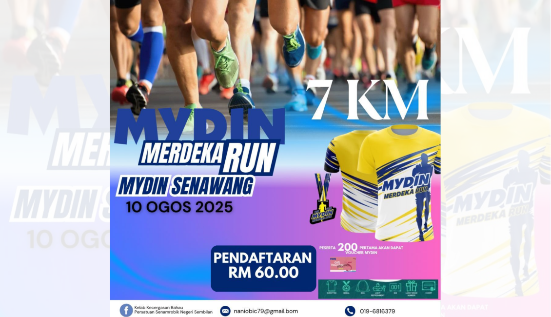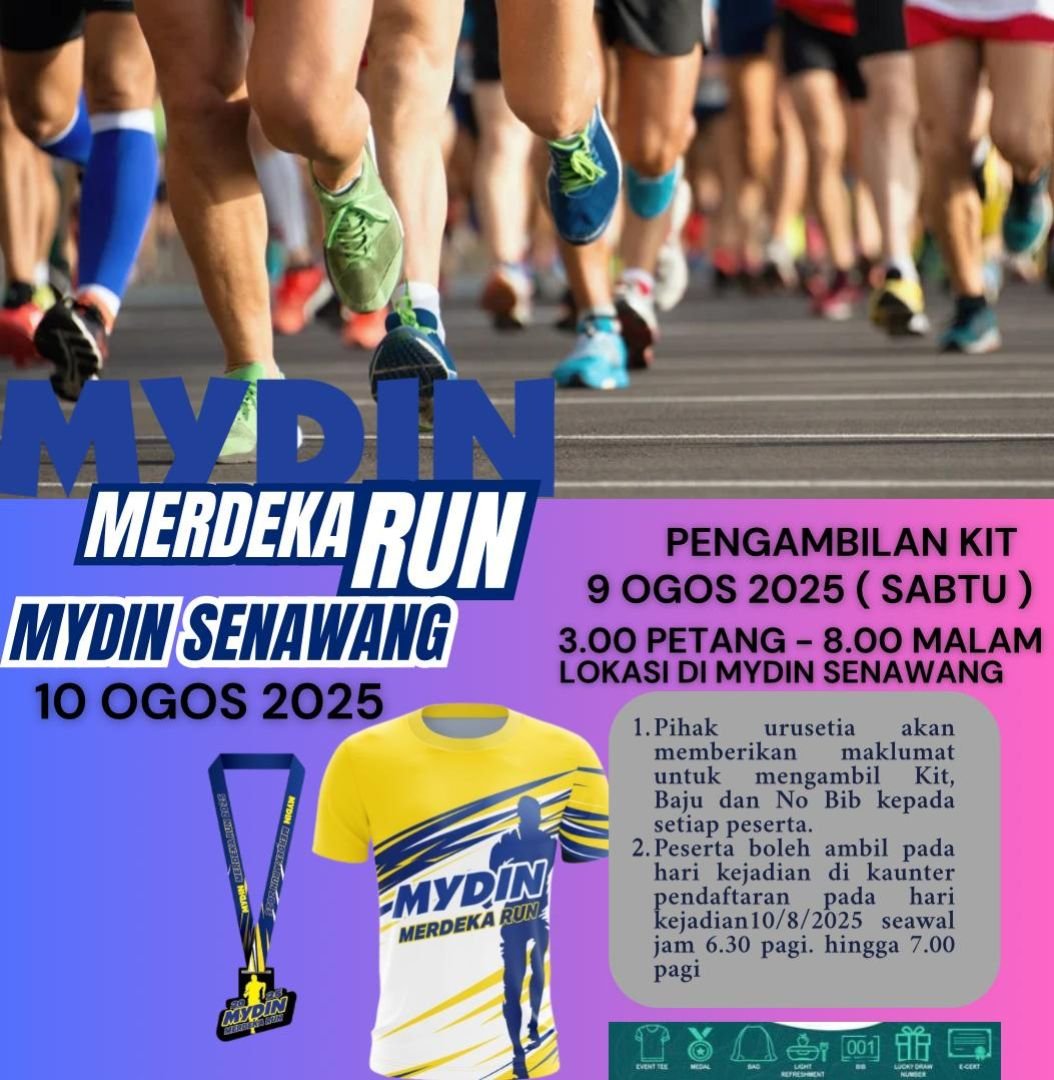 The Mydin Merdeka Run 2025 is a lively 7KM fun run taking place on Sunday, 10 August 2025, at Mydin Senawang Hypermarket, Seremban. Organized in celebration of Malaysia’s Independence Day, the event brings together participants of all ages for a morning of fitness, community spirit, and patriotic pride. With race kits, lucky draws, and a festive atmosphere, the run encourages a healthy lifestyle while fostering unity.