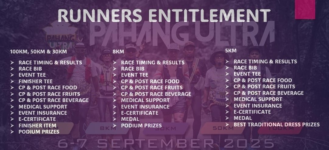 Pahang Ultra 2025 is a challenging endurance event set in the heart of Pahang, featuring ultra-distance categories designed for hardcore runners. Participants will experience scenic trails, lush greenery, and the true test of stamina in one of Malaysia’s most stunning natural terrains.