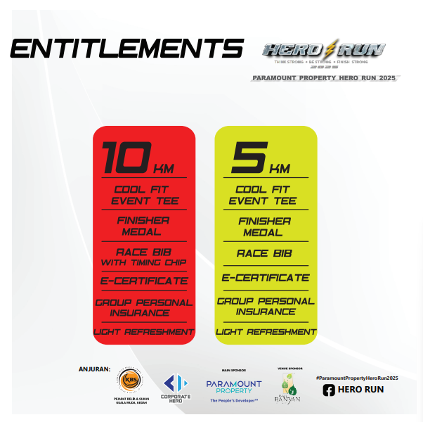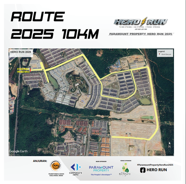 The Paramount Property Hero Run 2025 is a high-energy fun run scheduled for 23 August 2025 in Sungai Petani, Kedah, hosted by Paramount Property in partnership with Corporate Hero and the Kedah State Youth & Sports Department. Participants can choose between 5 km and 10 km distances, aiming to foster community wellness, unity, and healthy lifestyles. Limited to 2,000 slots, the event includes race kits, finisher medals, and lucky draws, with registration closing on 15 July 2025 or when fully booked.
