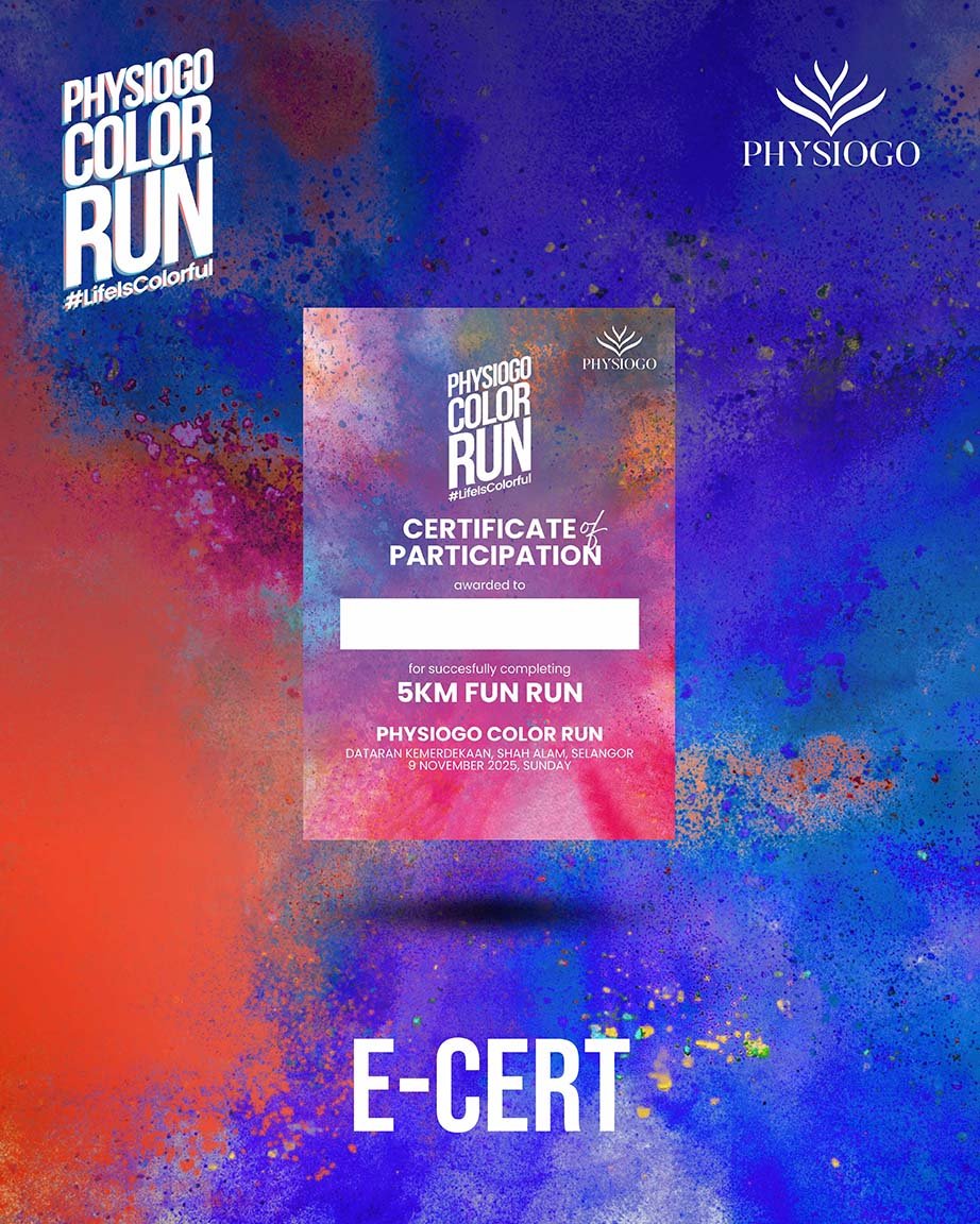Experience the vibrant thrill of the PHYSIOGO COLOR RUN 2025 – a fun-filled, family-friendly 4.8 km run held on 9 November 2025 (Sunday) at Dataran Kemerdekaan, Shah Alam. Starting at 7:30 AM, this high-energy event transforms runners into walking rainbows with color zones along the course. Each participant gets an event T-shirt, finisher’s medal, e-certificate to download post-race, group insurance coverage, and refreshing beverages.