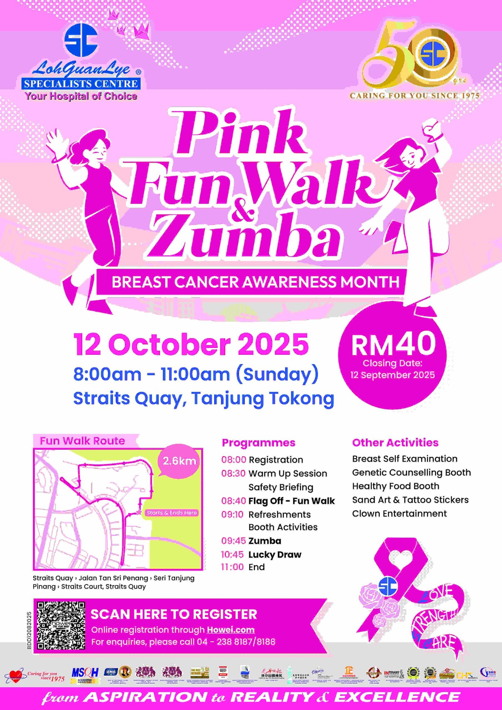 Join the energy and excitement at the Pink Fun Walk & Zumba 2025, a vibrant, family-friendly event promoting health, wellness, and breast cancer awareness. Enjoy a scenic fun walk followed by an electrifying Zumba session led by top instructors – all while dressed in pink to support a powerful cause. Perfect for all ages and fitness levels!