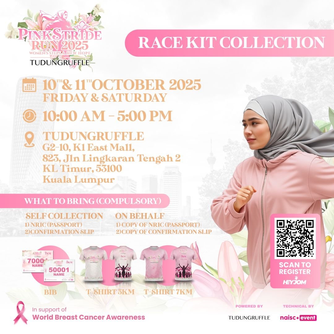 The Pink Stride Run 2025 by Tudung Ruffle is a heartfelt 5KM fun run held in honor of Breast Cancer Awareness Month. Organized by Tudung Ruffle, this empowering event celebrates strength, hope, and solidarity with breast cancer fighters, survivors, and supporters. Participants are encouraged to wear pink and stride with pride as they raise awareness and contribute to ongoing support and education efforts. Open to all ages and fitness levels, this run blends fashion, fitness, and a meaningful cause in one inspiring event.