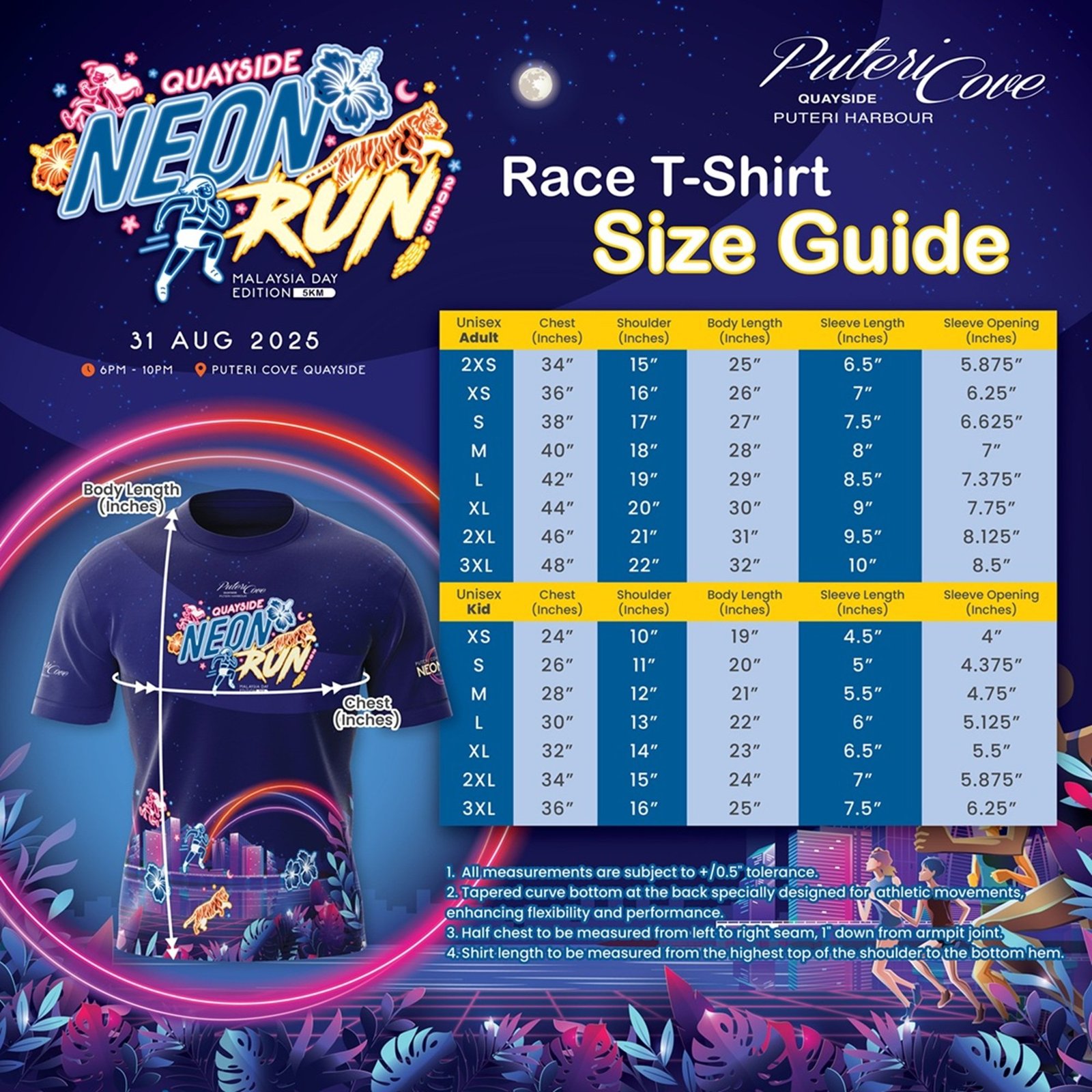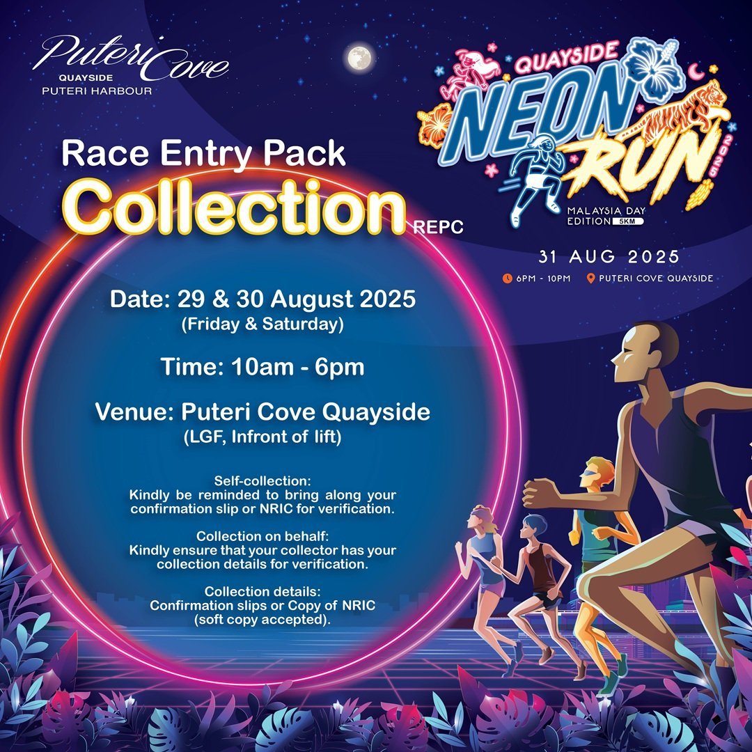 The Quayside Neon Run: Malaysia Day Edition 2025 is a glowing celebration of fitness and national pride held on 31 August 2025 at Puteri Cove Quayside, Iskandar Puteri, Johor. This vibrant 5 KM night run features neon-themed race T-shirts, glow accessories, drawstring bags, and a patriotic Merdeka medal. With festive lighting, upbeat music, live entertainment, and a fun, family-friendly atmosphere, it’s the perfect way to light up Malaysia Day with community spirit and active energy. Early-bird tickets are available, and participants can enjoy add-ons like LED glow bracelets and collectible souvenirs.