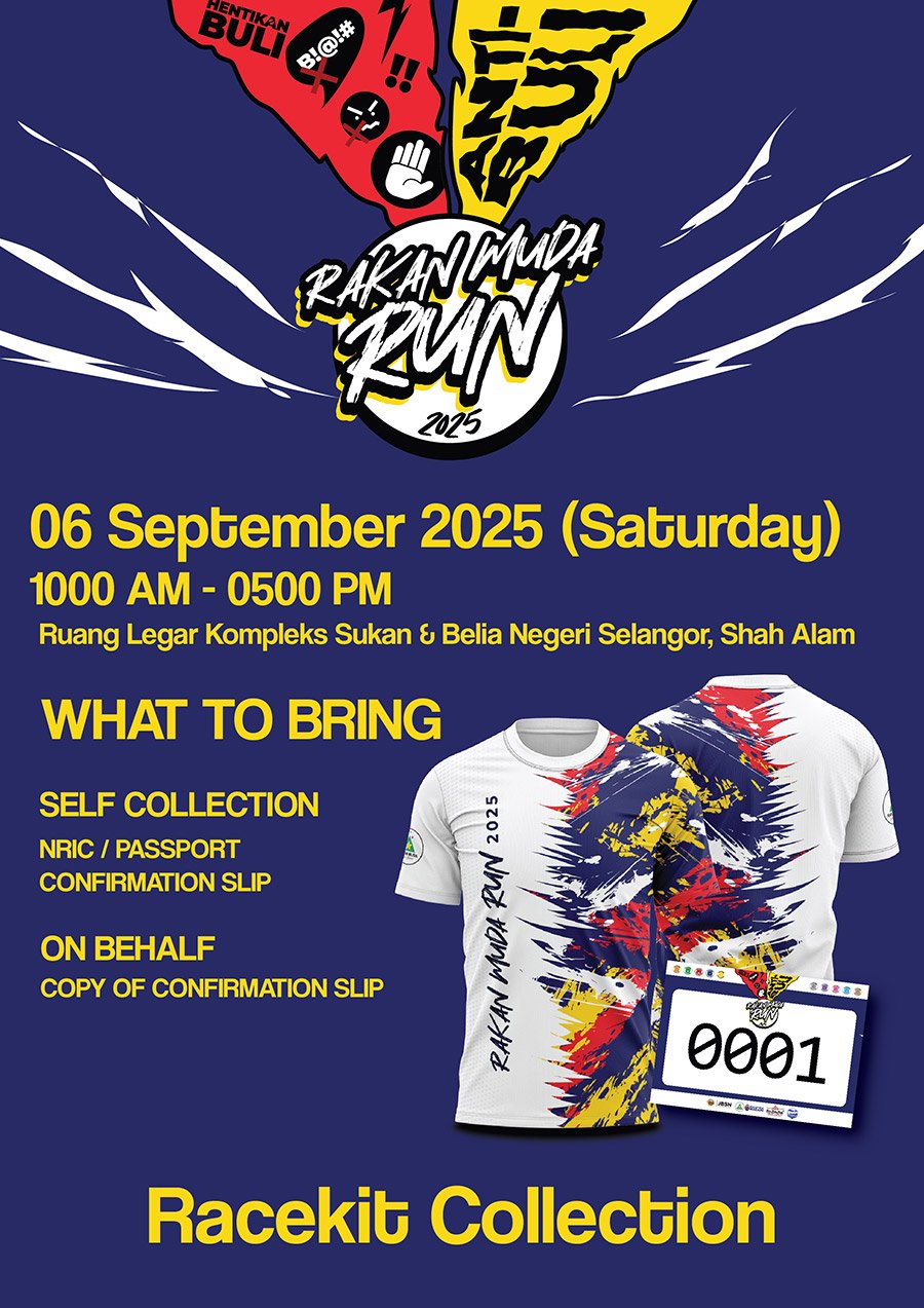 Rakan Muda Run 2025 is a community-backed run taking place on 7 September 2025 at Kompleks Sukan & Belia Negeri Selangor, Shah Alam, encouraging unity and anti-bullying awareness through a spirited fitness event.