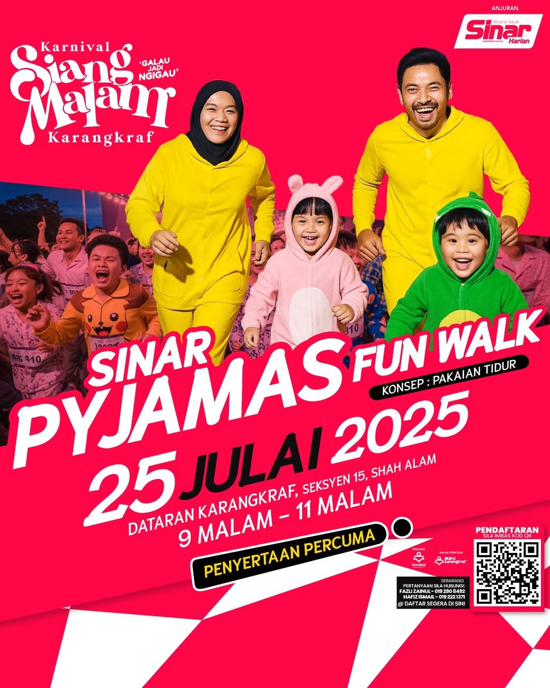 Sinar Pyjamas Fun Walk 2025 is a playful, family-friendly event where participants stroll in their favorite pajamas, celebrating comfort and fun in a relaxed morning atmosphere. It features a leisurely 3 km course, event shirts, light refreshments, and a cozy community vibe—perfect for all ages to bond in style and social spirit.