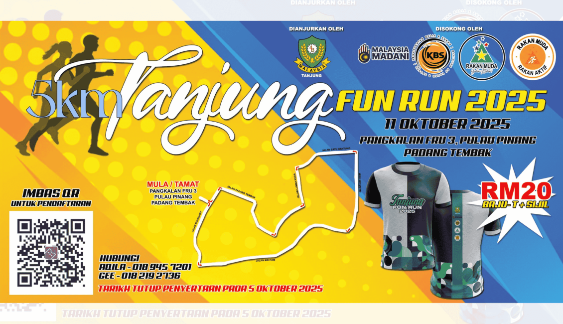 Tanjung Fun Run 2025 is the most exciting community run of the year, bringing families, fitness lovers, and outdoor seekers together for a vibrant morning by the coast. Join us for a fun-filled 5KM experience complete with scenic views, upbeat activities, and exclusive event goodies for all participants. Whether you’re running, walking, or just soaking in the energy, this event celebrates health, togetherness, and pure enjoyment. Secure your spot today and be part of a memorable run that kicks off your 2025 with positivity and movement.