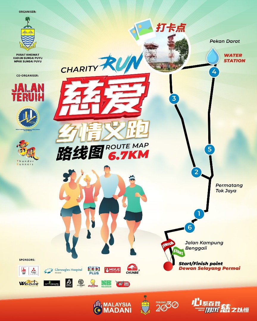 The Love Charity Run 2025 is a heartwarming community-focused 5 km run held on 10 August 2025 at Taman Selayang Permai, Butterworth, starting bright and early at 7 AM. Open to participants of all ages and abilities, it blends fitness with a meaningful cause—raising funds for local charitable initiatives. Runners will receive an event t-shirt and finisher medal, and there’s a chance to win prizes through lucky draws, all within a warm, inclusive atmosphere that celebrates giving back while staying active.