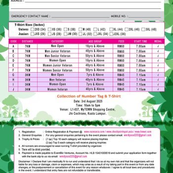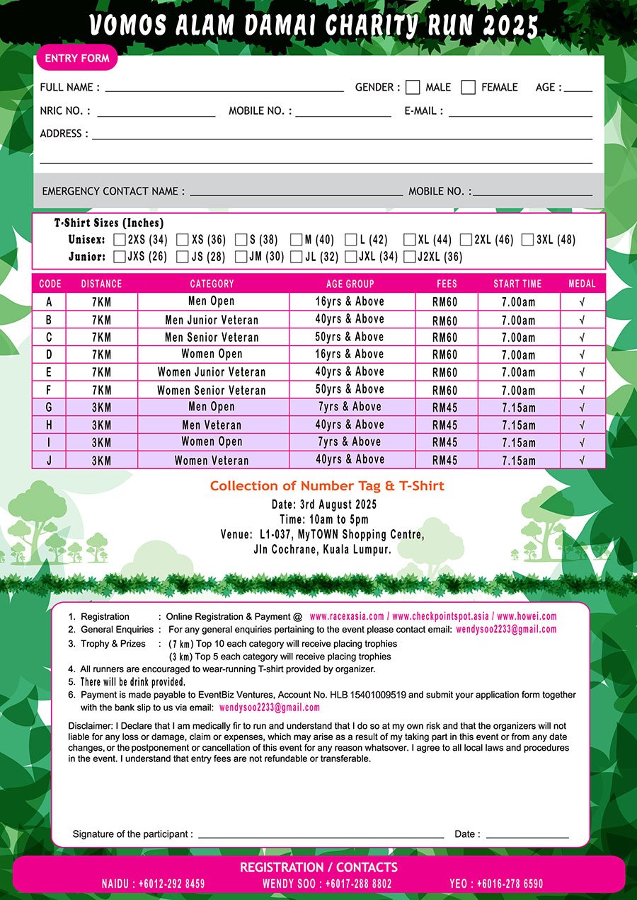Vomos Alam Damai Charity Run 2025 is a community-focused running event promoting health and togetherness. Held in Kuala Lumpur, it features fun and competitive categories suitable for all ages, with proceeds supporting charitable causes.