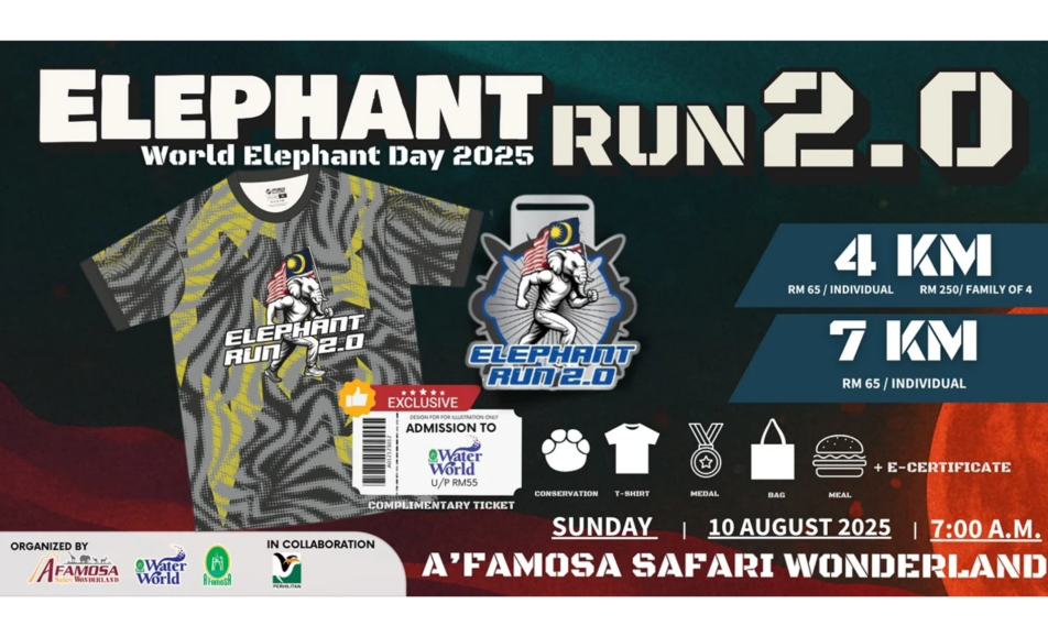 Elephant Run 2.0 is a family-friendly fun run hosted at A’Famosa Safari Wonderland in Malacca. Featuring a 5 km fun run, 3 km walk, and a special family package, participants enjoy scenic routes through the resort, receive event shirts, medals, and safari...