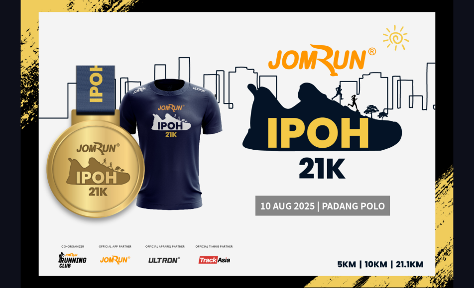 JomRun® Ipoh 21K (Half Marathon) 2025 is happening on 10 August 2025 at Padang Polo, Ipoh, kicking off at 4:40 AM. The event offers three distances: a 5 km fun run, a 10 km run, and a competitive 21.1 km half marathon—each with official...