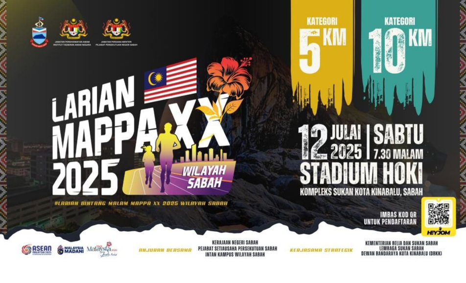 Larian MAPPA XX Wilayah Sabah 2025 is a community-focused public service run organized by INTAN in collaboration with government agencies. Scheduled for 12 July 2025 in Kota Kinabalu, this event features a 3 km fun run and a 10 km competitive race...
