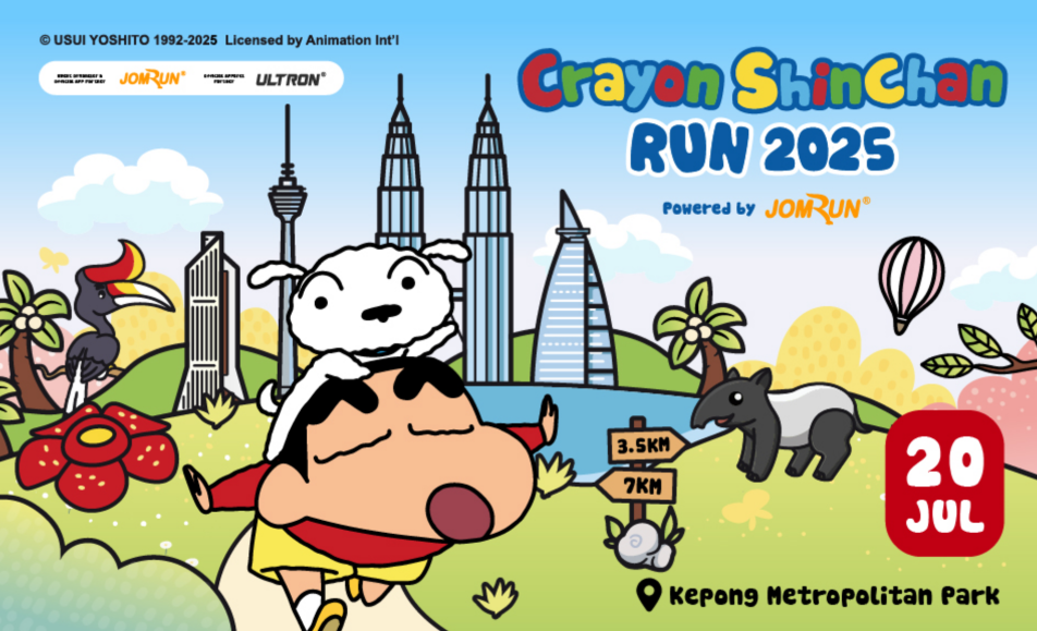 The Crayon ShinChan Run 2025 is a fun-filled family-friendly running event set for Sunday, 20 July 2025, at 7:00 AM at Kepong Metropolitan Park, Kuala Lumpur. Organized by JomRun, it offers 3.5 km and 7 km categories with inclusions like an official Crayon ShinChan Ultron®...